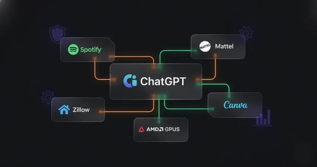 Ku ikubitiro porogaramu zahujwe na ChatGPT harimo Booking.com, Canva, Coursera, Expedia, Figma, Spotify, na Zillow.